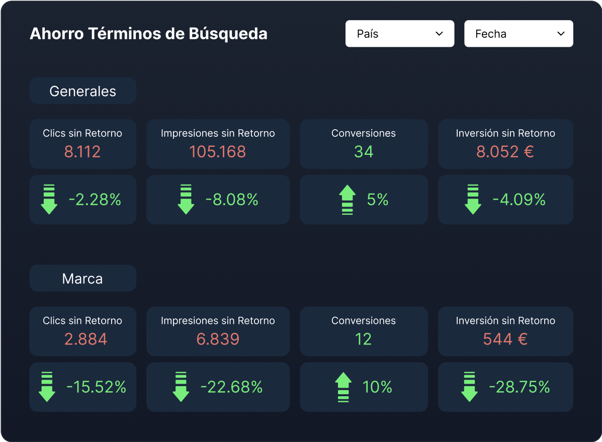 Elimina términos de búsqueda improductivos y potencia aquellos que generan conversiones al menor coste.